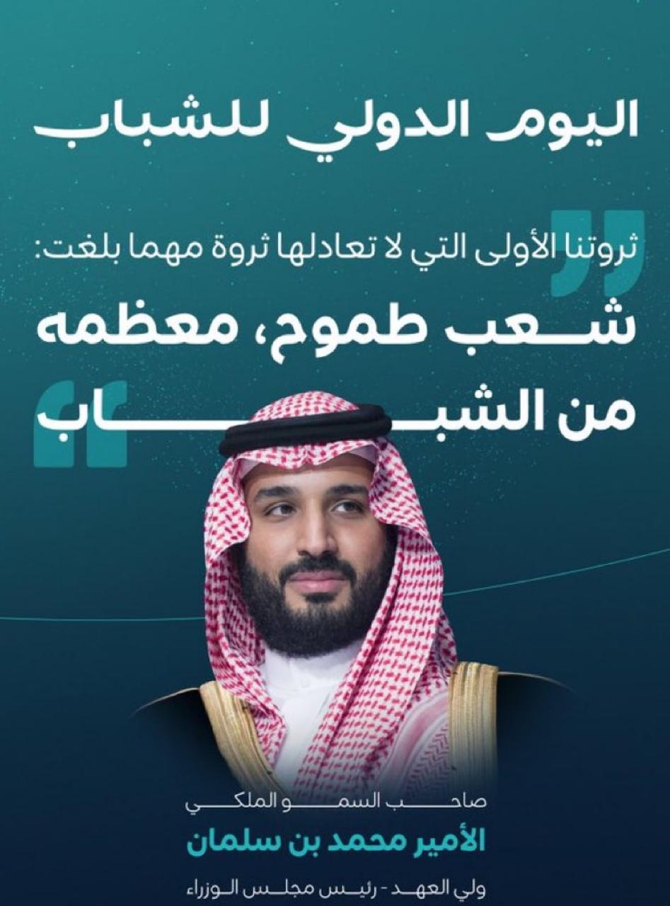 مناسبة أقرتها الجمعية العامة للأمم المتحدة عام 1999 لتسليط الضوء على قضاياهم ودورهم في صناعة التنمية . غير أن المملكة العربية السعودية لا تنتظر هذا الموعد لتلتفت إلى شبابها، فهم على مدار السنة قلب المشهد ونبض المستقبل.